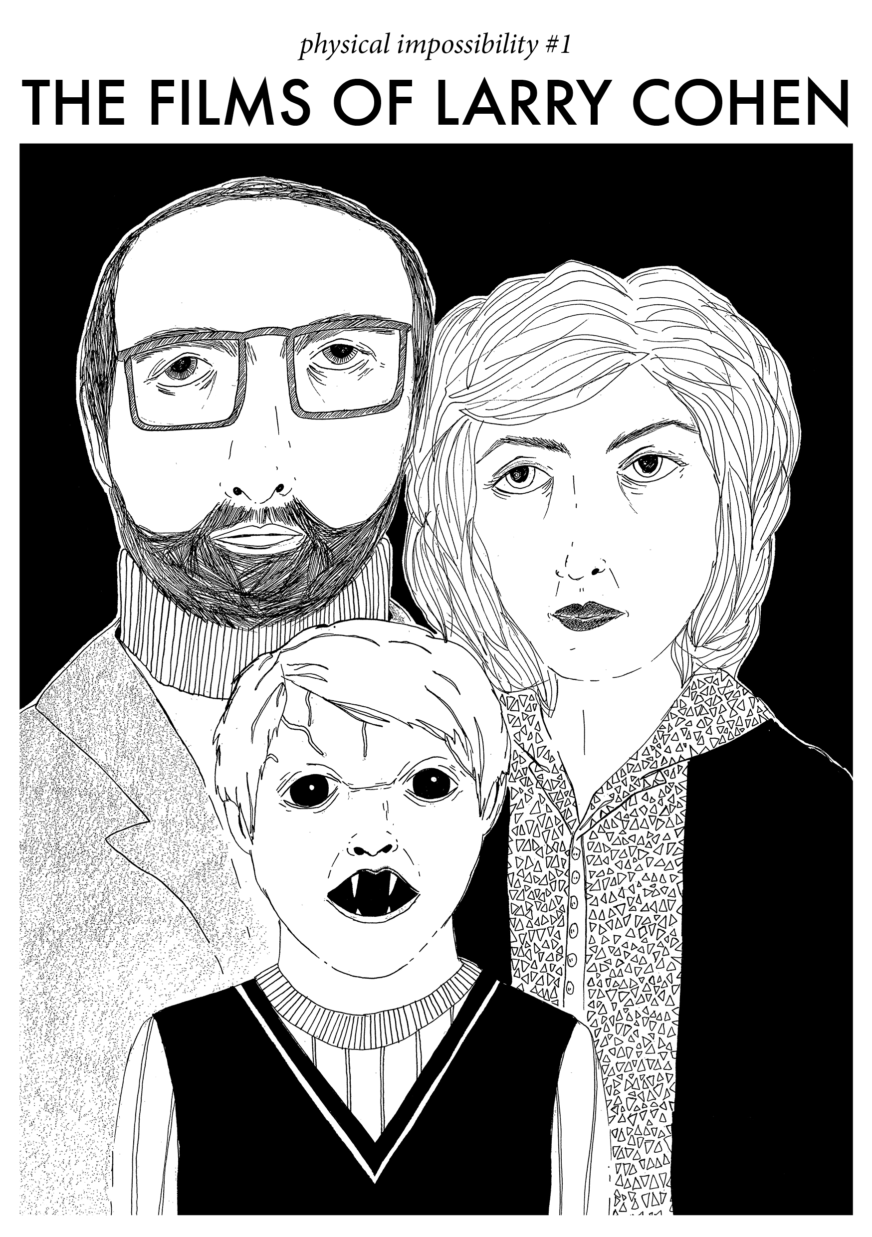 I’m excited to announce the launch of my first zine, Physical Impossibility #1: The Films of Larry Cohen, featuring all-new writing by myself and original illustrations by Ryan Bharaj, Russell Elder, Victoria Firth, Sarah Amy Fishlock, Stephen Kelly, Erin McGrath and Claudia Nova!